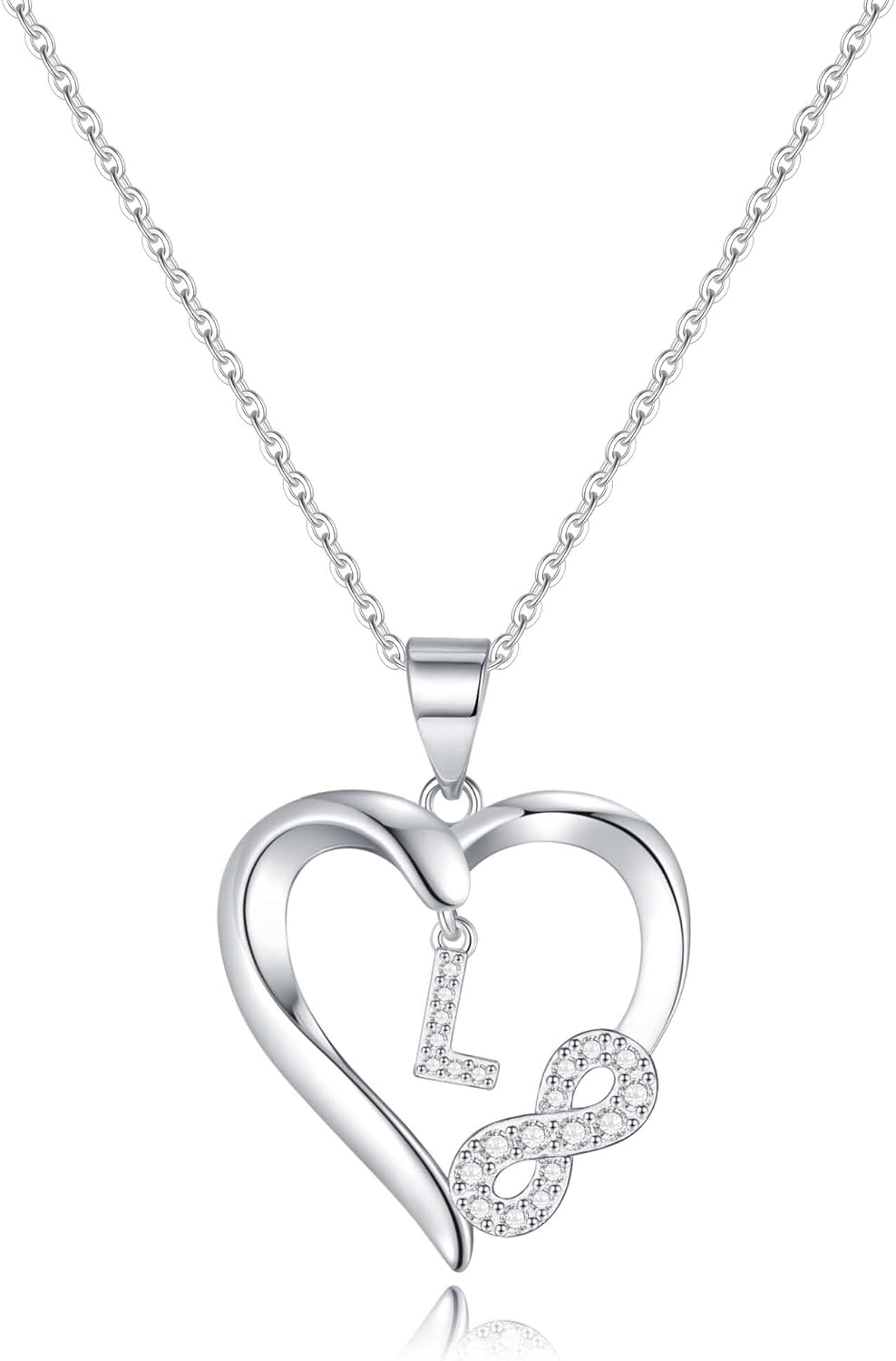 Unique Necklace Gifts for Women Girls Exquisite Infinite heart initial necklace has a unique meaning, can represent the initials of your loved one, is the great choice to give a gift to her. Infinity Heart Pendant Necklace ●Initial Necklaces is made by high-quality 925 Sterling Silver, inlay 5A cubic zirconia stone. ●Lead free and nickel free, hypoallergenic for women teen girls wear. ●18''+2''(adjustable chain length), perfect initial necklace length for most women girls, match with different occasions. ●This heart necklace is the perfect gift for women, moms, grandma, wife, girlfriend, sisters, friends, aunts and nieces. ●You can be on important holiday anniversaries as a perfect jewelry gift for yourself or your loved one. ●Can be used as a special gift for Birthday, Mother's Day, Wedding, Anniversaries, Valentine's Day, Easter, or Christmas, or some other festivals that you host yourself. Jewelry Tips 1.Avoid your silver jewelry from being exposed to high temperatures or directly to sunlight. 2.It can be removed during washing or bathing to protect your silver from corrosion. 3.Usually do not wear to be regularly with soft cloth cleaning, put in a suitable box.