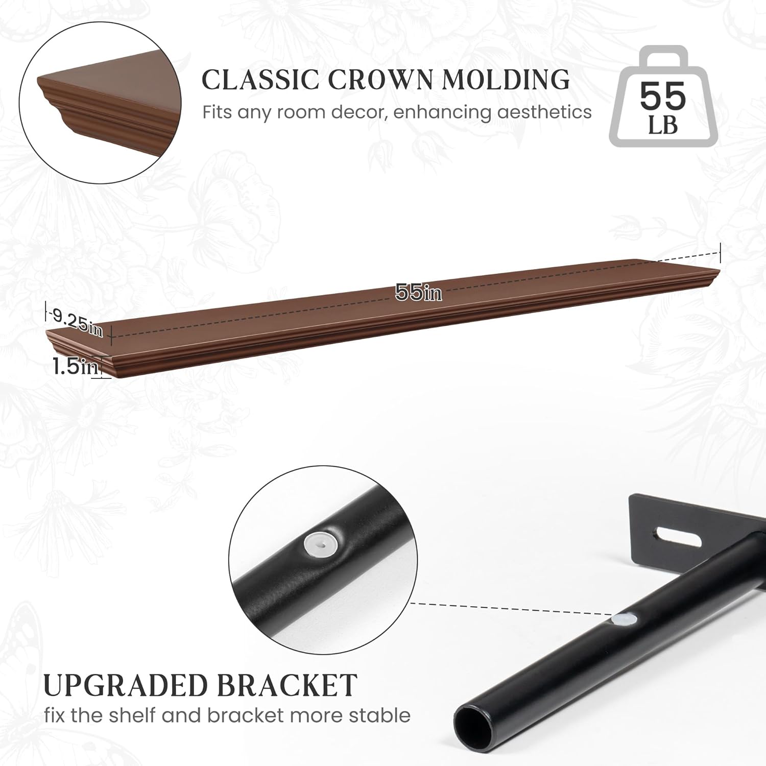 | Special Feature | floating shelf wall mounted, heavy-duty wall shelf, light wood floating shelf, 9.3 inch deep, large wall shelves |