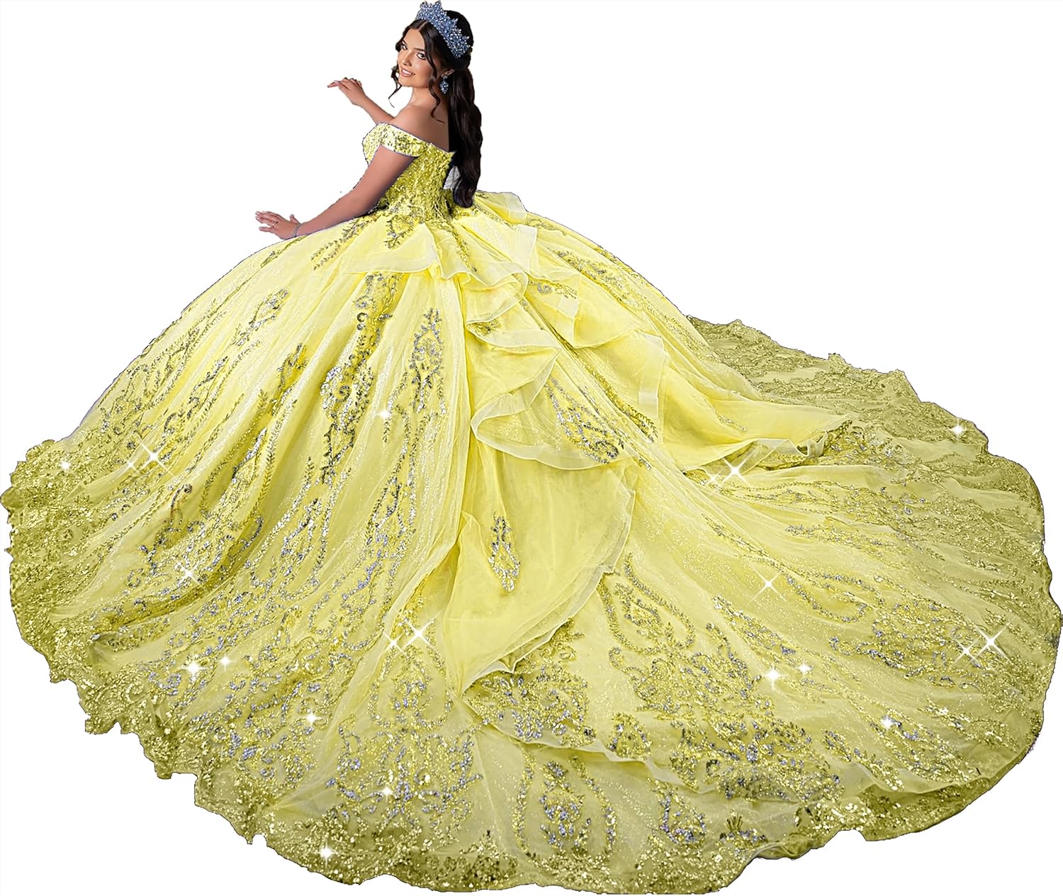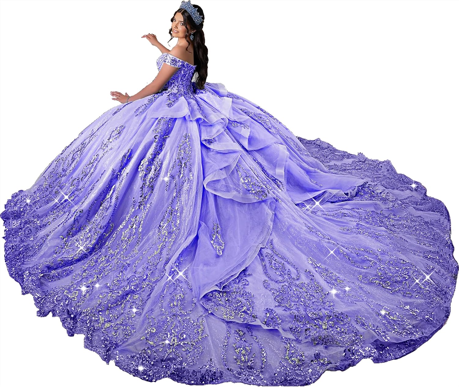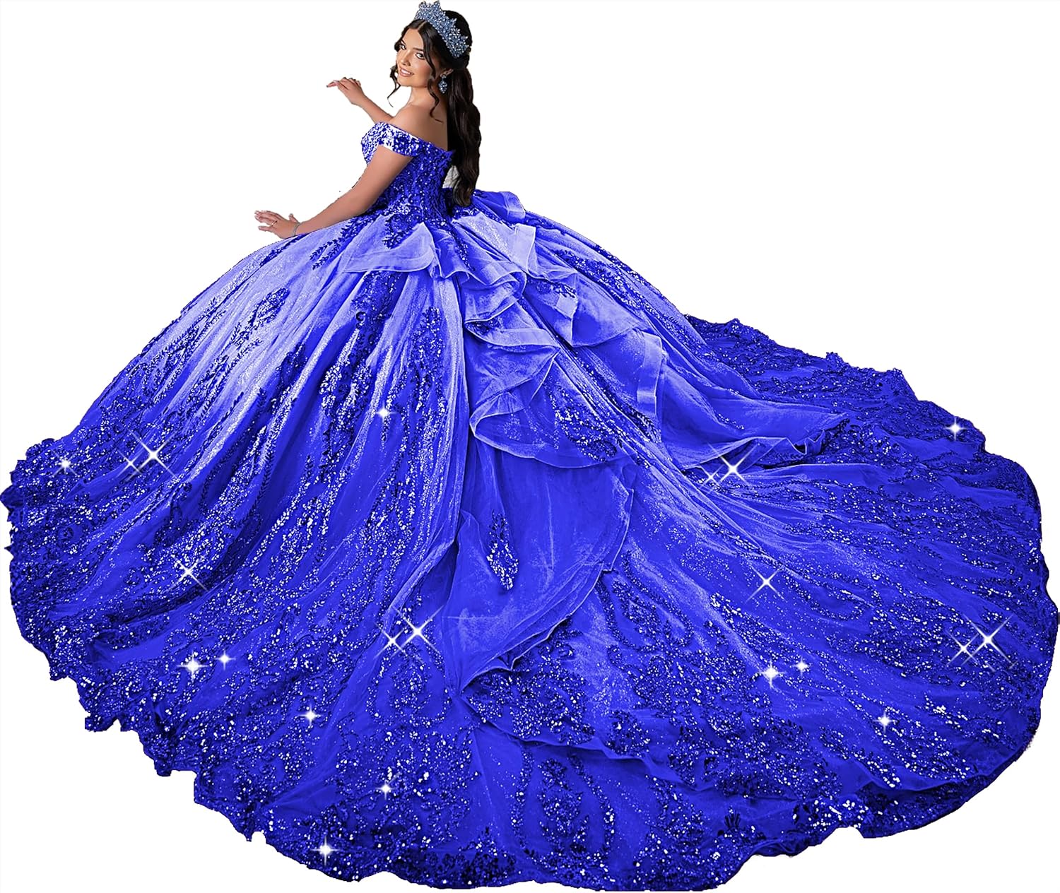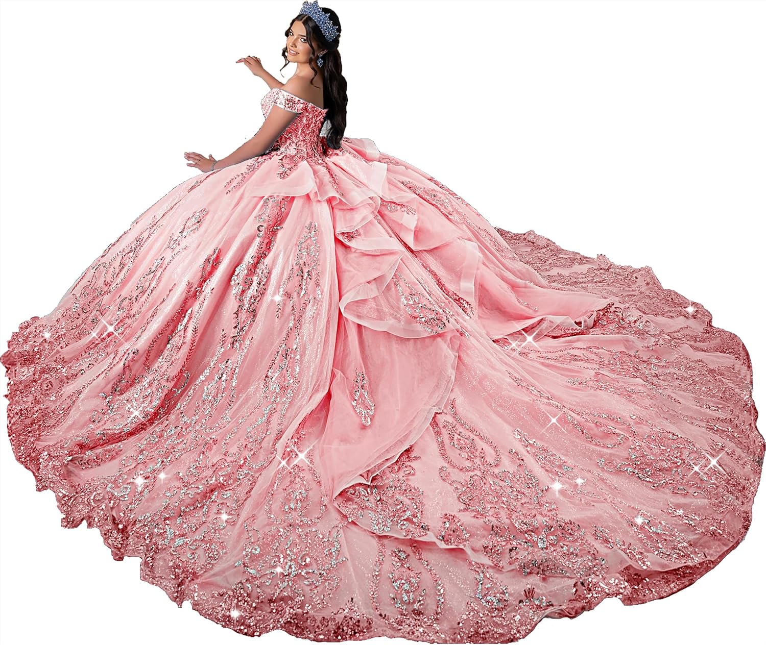 | Fabric Type | high quality puffy glitter quinceanera dress with long train,sparkly appliques, beading, diamonds, soft and skin friendly. |