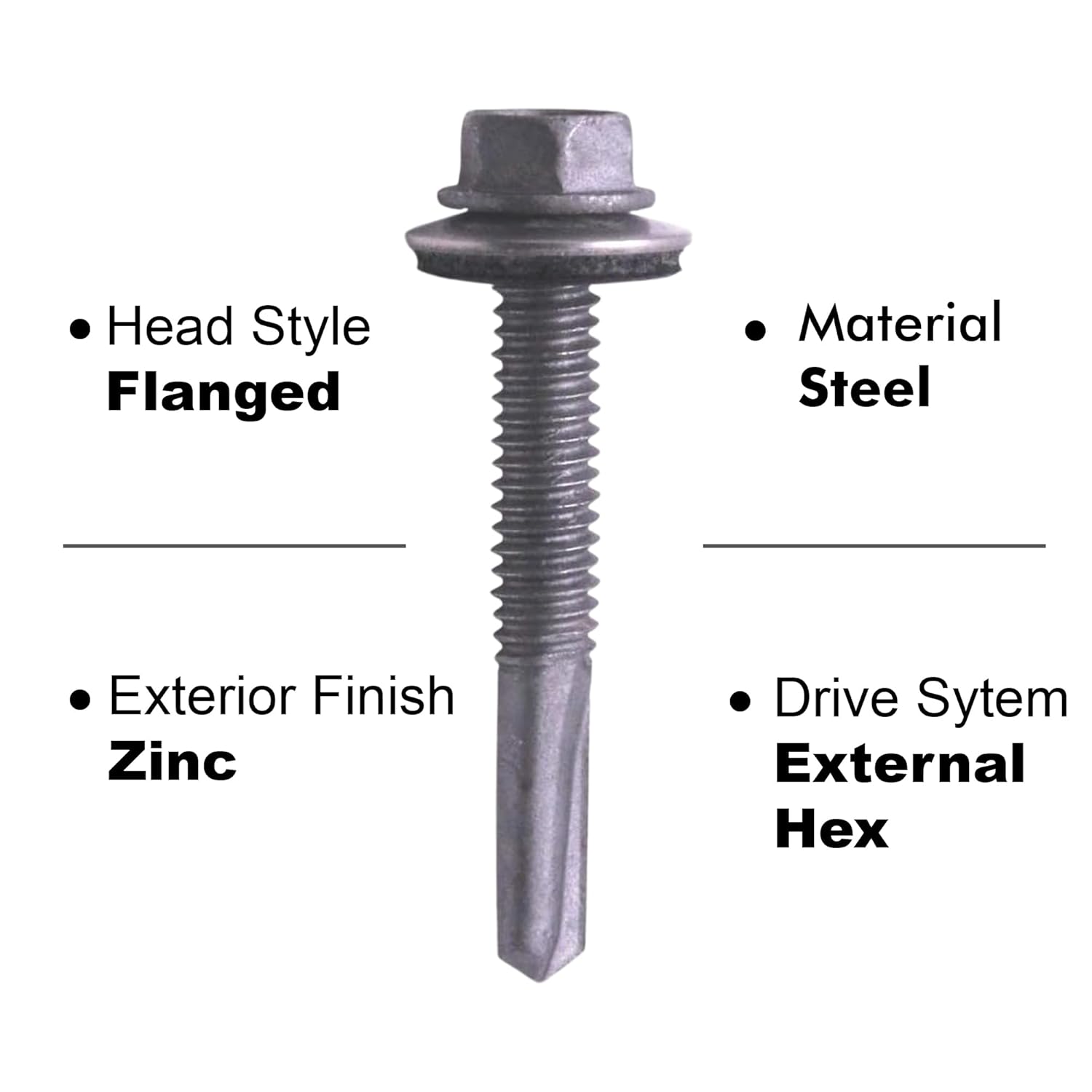 #12-24 x 2" Hex Washer Head Self Drilling Screw, Tek 5 Point, Steel, Zinc Plated (Package of 250). This screw is intended for attaching metal to metal. Tek Screws are a type of self-tapping screw that are designed to drill a hole and tap their own threads simultaneously, saving the installer the time of pre-drilling the holes where needed. Drill Capacity (.125" - .500") Recommended Drill Speed (1500) ICC ES Evaluation Report: ESR-3528 **Meets ASTM C 1513 for cold-formed steel framing connections. **Meets F.I.P.-1000.7 for torsional strength & drill speed **Meets SAE J78 for performance & dimensional specifications **Meets ASTM F1941 for corrosion resistance **Meets ASTM A 510 for carbon steel manufacturing